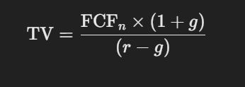 The Terminal Value (TV) accounts for future cash flows beyond the projection period.